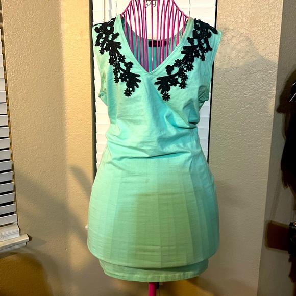 Mint dress with black lace. Size large. Some small stains towards the bottom so will discount more.