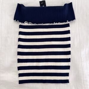 Motel Women’s Sleeveless Off the Shoulder Top MEDIUM Navy Striped NWT $69 MSRP
