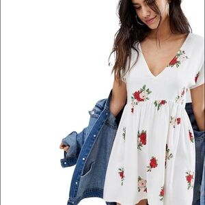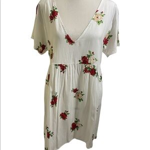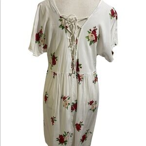 Motel dress white floral v-neck plunge front. Lace back tie. Size large great spring summer dress. Viscose.
