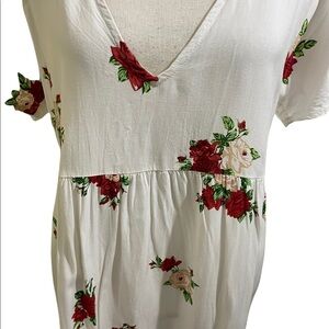 Motel dress white floral vneck front lace back.Size Large. Viscose summer