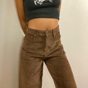 Corduroy is such a trend rn! Our Parallel jean trousers come in a dark brown 'choc” cord and feature a 90's wide leg jean, high waist, zip fly fastening and pockets. Wear with your fave basic top