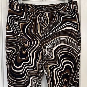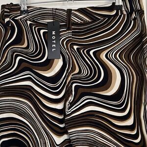 Motel rocks NWT flare jeans with 70s print swirl brown tan black