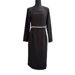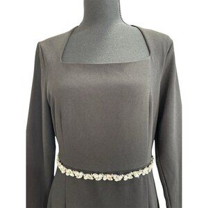Motf Rhinestone Belt Black Square Neck Dress Size M