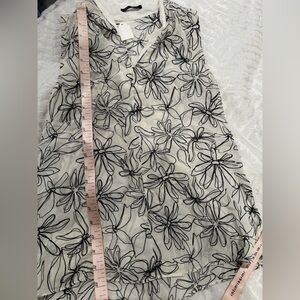 Motf silk Floral abstract Print Sleeveless Top Black and White