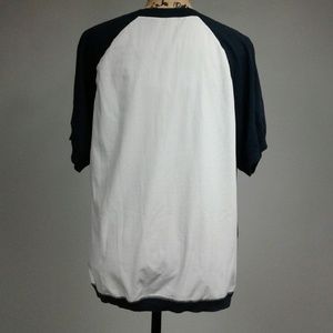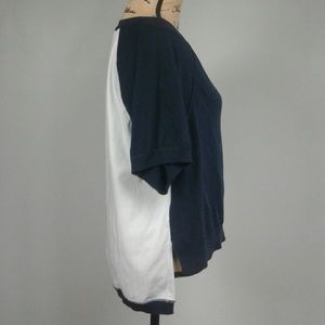 Moth Navy blue and light gray short sleeve sweater. Front is sweater material while back is more of dress shirt material.