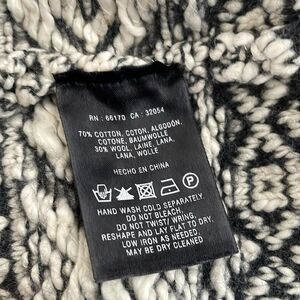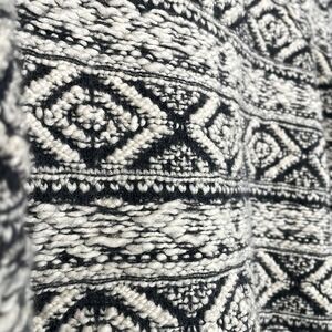 Excellent condition. Sweater is cropped to waist length (measurements pictured). Fair isle design in grayscale colors. Long sleeve. Cotton/wool blend.