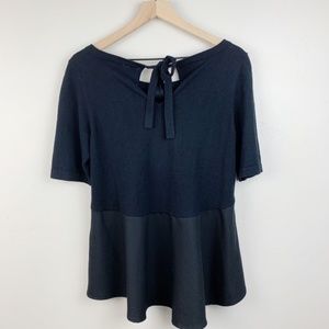Moth | Anthropologie Black Peplum Sweater sz Medium. Keyhole tie back, scoop neck, short sleeve. * Pit to Pit approx 16” * Length approx: 24.5” * Condition: Excellent preowned condition, smoke free home.