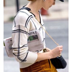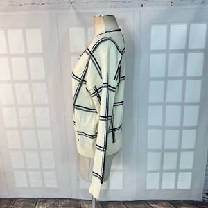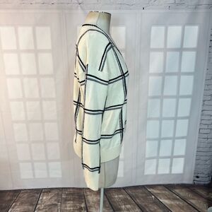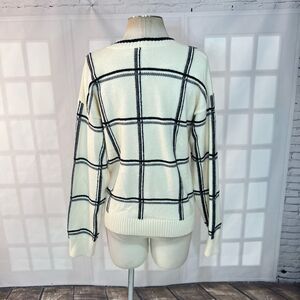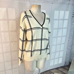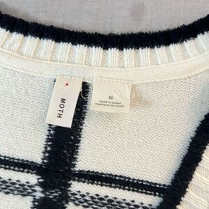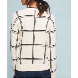 Moth Anthropologie Black White Windowpane Plaid V-Neck Sweater Size Medium