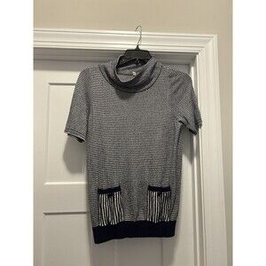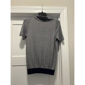 Moth Anthropologie Blue White Stripe Short Sleeve Mock Sweater Size Small Preppy