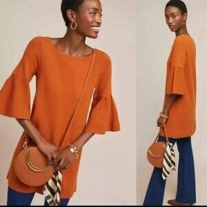 Moth Anthropologie Chester Bell Sleeve Rust Tunic Sweater Dress