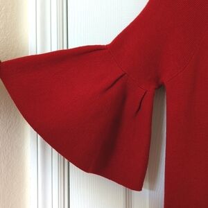 Moth Anthropologie Classic Knit Half Bell Sleeve Mini Sheath Sweater Dress Red S