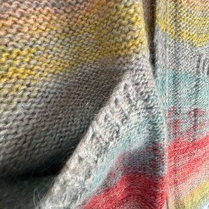Add a splash of color and texture to your wardrobe with this Moth by Anthropologie sleeveless cardigan sweater, crafted in a luxurious mohair blend with a vibrant rainbow knit pattern. This open-front vest features front pockets, a soft fuzzy texture, and a relaxed silhouette—perfect for layering over tees, dresses, or long sleeves.