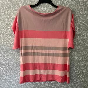 Moth Anthropologie Coral Striped Short Sleeve Sweater - Size Small - Knit Top