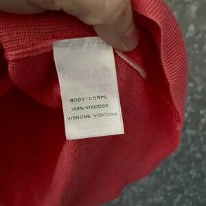 Women's short sleeve sweater by Moth for Anthropologie. This coral and gray striped knit top has short dolman sleeves and a scoop neck. It is 100% viscose.