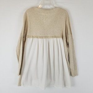 Moth Anthropologie Cream & White Knit Vneck Loose Sweater Chiffon Back sz XS