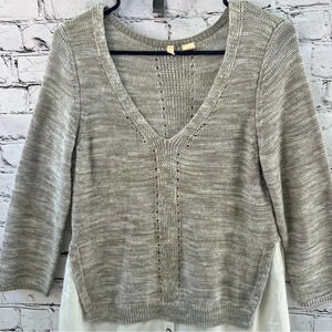 Moth Anthropologie Mixed Media Sweater Blouse Gray and White Size Medium