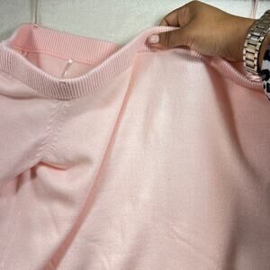 One very faint spot that should come out when the tags are removed and the top is washed- otherwise excellent new with tags condition. The color is a beautiful vibrant light pink color. Nice knit sweater top for the spring and summer.