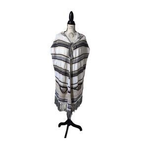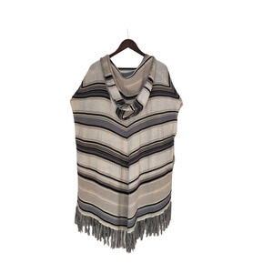 Moth Anthropologie Striped Poncho Hooded Fringe Calexico Cardigan Cape Boho XS/S