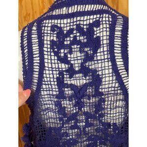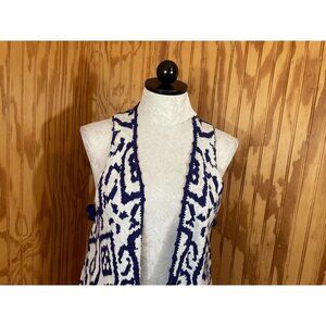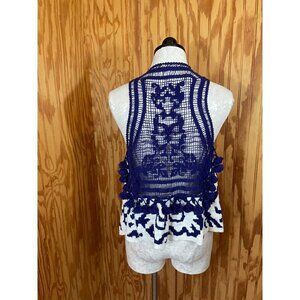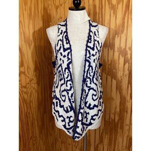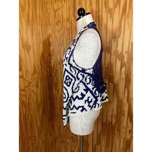 Moth Anthropologie Sweater Cardigan Sleeveless Knit Cotton Purple/White Sz XS/S