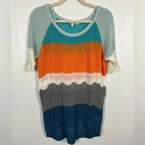 Moth Anthropologie Sweater Womens XS Topographic Colorblock Semi Sheer High Low