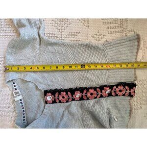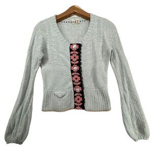 Moth Anthropologie Womens Sweater Sz S Eggshell Blue Floral-Ribbon-Trim Cropped