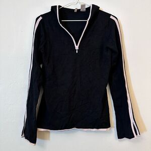 Moth Anthropologie Womens Y2K Hoodie 1/4 Zip Athletic Sweater Black Small with Pink Trim