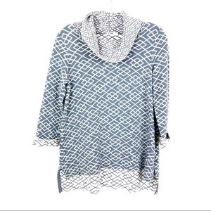 Gorgeous blue and white Moth Anthropologie sweater! Cowl neck 3/4 sleeve. High low hem. Boho chic!