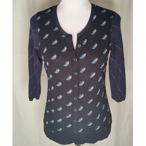 Moth Anthropologie cardigan pinstripe fox pattern vest navy red black retro S