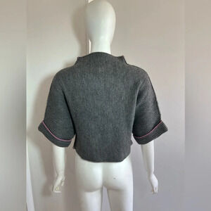 Moth Anthropologie gray short sleeve Mock Neck Contrasting Stitch sweater Size S