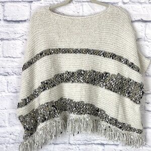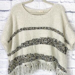 Moth Anthropologie ivory crew fringe poncho sweater small