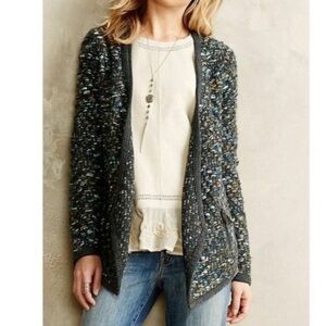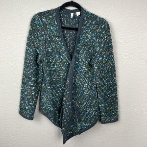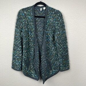 Moth Boucle Keavy Jacquard Cardigan 3D Knit Open Front Gray Green Sz M
