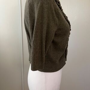 Lt Olive green crop sweater by Moth-Anthropologie 3/4 sleeve, ruffle trim, button front sweater.
