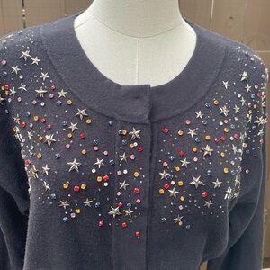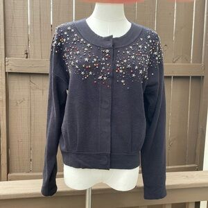 Moth Crystal Beaded Stars Snap Front Cardigan size small