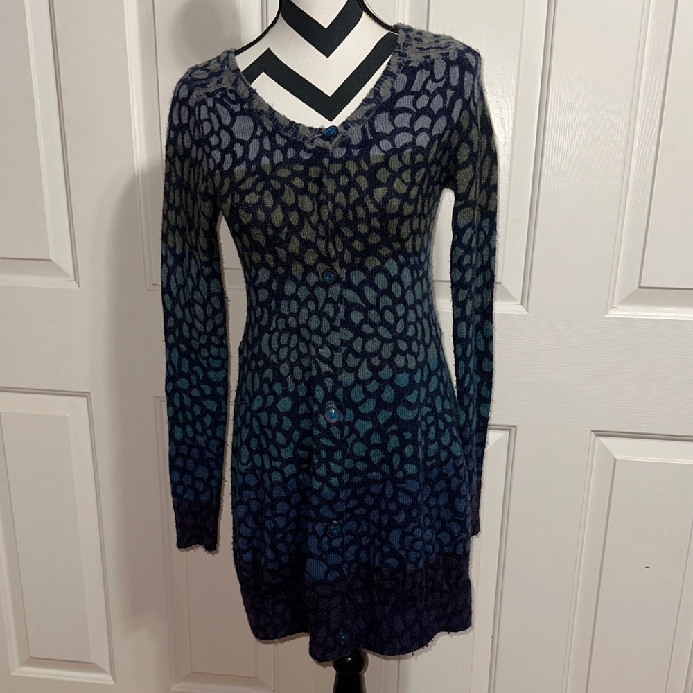 Moth Multi Color Patterned Cardigan Size: Small Fabric: 42% Acrylic, 30% Nylon, 19% Wool, 9% Alpaca