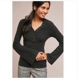 Anthropologie Moth Outpost Ribbed Bell Sleeve Henley Sweater