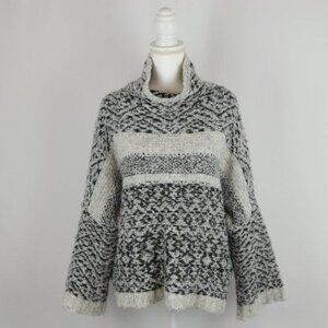 Moth Solita Women's Large Gray Black Wool & Alpaca Funnel Neck Oversize Sweater