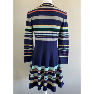 Moth Sweater Dress Fit Flare Navy Blue Freen Gray Stripe Small S