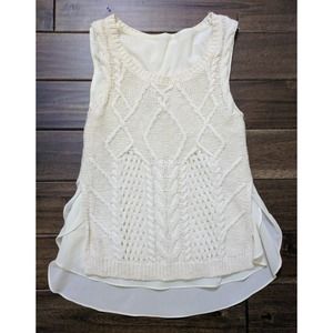 Anthropologie Moth Sweater Tank Top Cream Layered M Sleeveless Crochet Knit Top.
