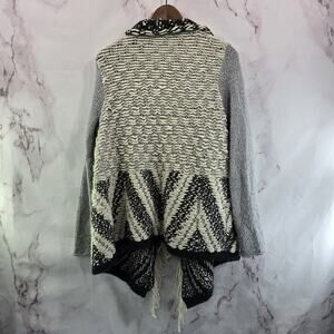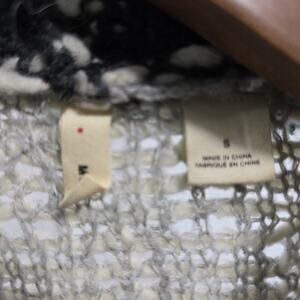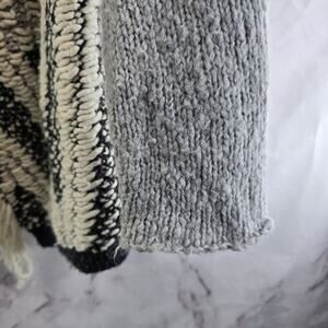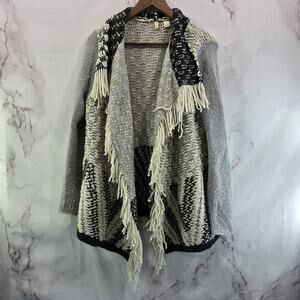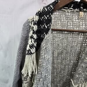 Moth Sweater Womens Small White Black Wool Cardigan Open Fringe Boho