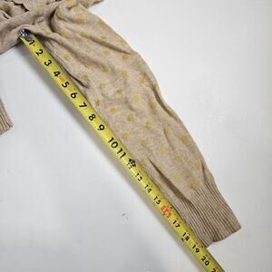Moth Women Hooded Zip Wool Blend Cardigan Sweater Tan Yellow Dots Large Ruffle