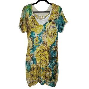 Moth Wool Alpaca Blend 2 Piece Sweater Dress Sz Medium Mustard Yellow Blue NEW