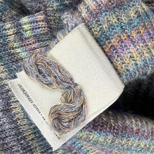 The Moth Y2K Fit Space Dye Swing Striped Sweater in size small is a stylish and comfortable pullover sweater designed for casual occasions. Made from a wool blend and acrylic material, this tight-knit sweater features a round neck and long sleeves, perfect for adding a touch of color to your outfit. The multicolor stripes and regular fit make it a versatile choice for women looking for a fashionable and easy-to-care-for sweater. Hand wash only to keep this sweater looking great for years to come.