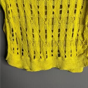 Moth Yellow Short Sleeve Open Knit Sweater With Side Slits Sz Small Petite