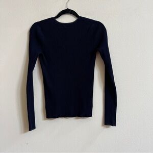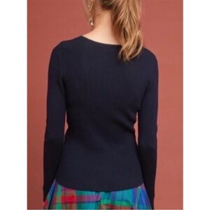 Moth by Anthropologie Navy Blue V Neck Ribbed Sweater