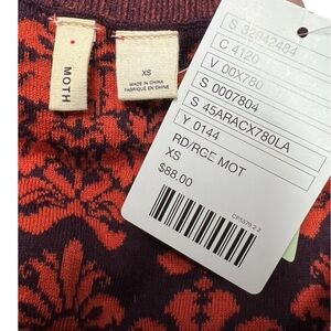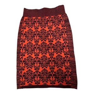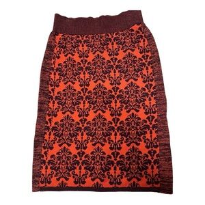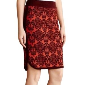 Moth by Anthropologie Orange Jacquard Pencil Skirt Velvet Embossed Size XS