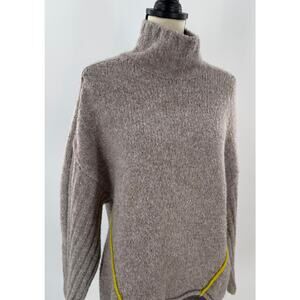 Moth for Anthropologie Beige Slouchy Mock Neck Sweater Lime Trim Small