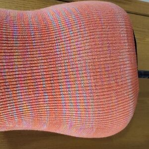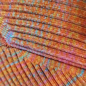 knit orange ribbed short sleeve scoop neck top has pretty variegated multicolor undertones to the orange size medium by moth