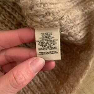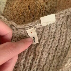 Moth womens cream and tan wool knit long sleeve v-neck sweater -S