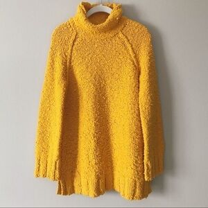 Moth for Anthropologie Juliette turtleneck sweater in Mango (gold/yellow color). Size small. Long sleeves. Side slits at hem. Pullover sweater. Nubby knit sweater. Retailed for $120. Pre-owned, great used condition- sweater has intentional nubby texture, but there are a few loose threads throughout.