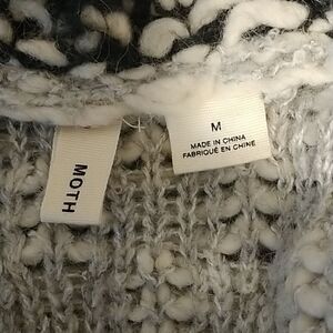 Anthropologie Moth chunky knit various textures gray, white, black open cardigan with fringe in excellent used condition size M